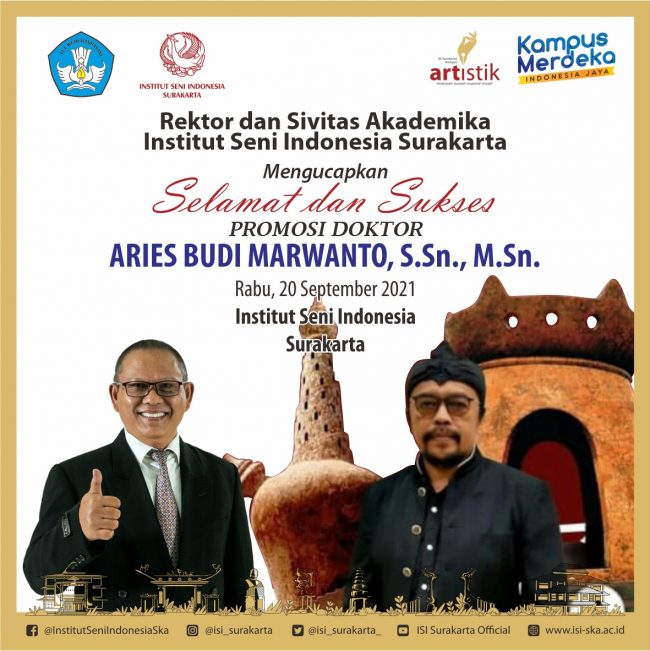 “Selamat dan Sukses atas Ujian Promosi Gelar Doktor” Kepada Aries Budi Marwanto, S. Sn., M. Sn