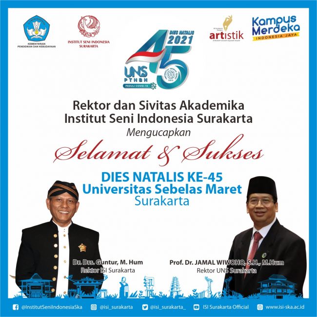 Rektor dan Sivitas Akademika ISI Surakarta Mengucapkan Selamat dan Sukses Dies Natalis Ke-45 Universitas Sebelas Maret Surakarta