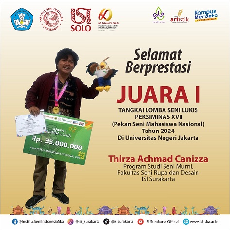 HUMASISISOLO,– Thirza Achmad Canizza mahasiswa semester VII, Program Studi Seni Murni, Fakultas Seni Rupa dan Desain Institut Seni Indonesia (ISI) Surakarta berhasil mempersembahkan Juara 1 untuk Tangkai Lomba Lukis dalam Peksiminas XVII (Pekan Seni Mahasiswa Nasional ) 2024 yang diselenggarakan pada tanggal 2–6 September 2024 di Universitas Negeri Jakarta (UNJ). 28 peserta mewakili Perguruan Tinggi…