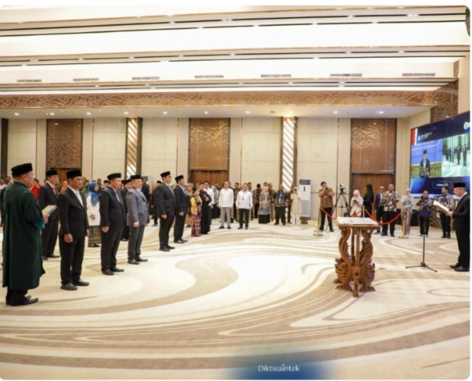 HUMASISISOLO, — Kementerian Pendidikan Tinggi, Sains, dan Teknologi (Kemdiktisaintek) resmi melantik Rektor ISI Solo Periode 2025-2029, Dr. Bondet Wrahatnala, S. Sos., M. Sn., bersama sejumlah pemimpin perguruan tinggi lain, serta pejabat administator di lingkungan Kemdiktisaintek. Sekretaris Jenderal (Sesjen) Kemdiktisaintek, Togar Mangihut Simatupang memimpin prosesi pelantikan yang digelar di kantor Kemdiktisaintek, Senin (6/10).