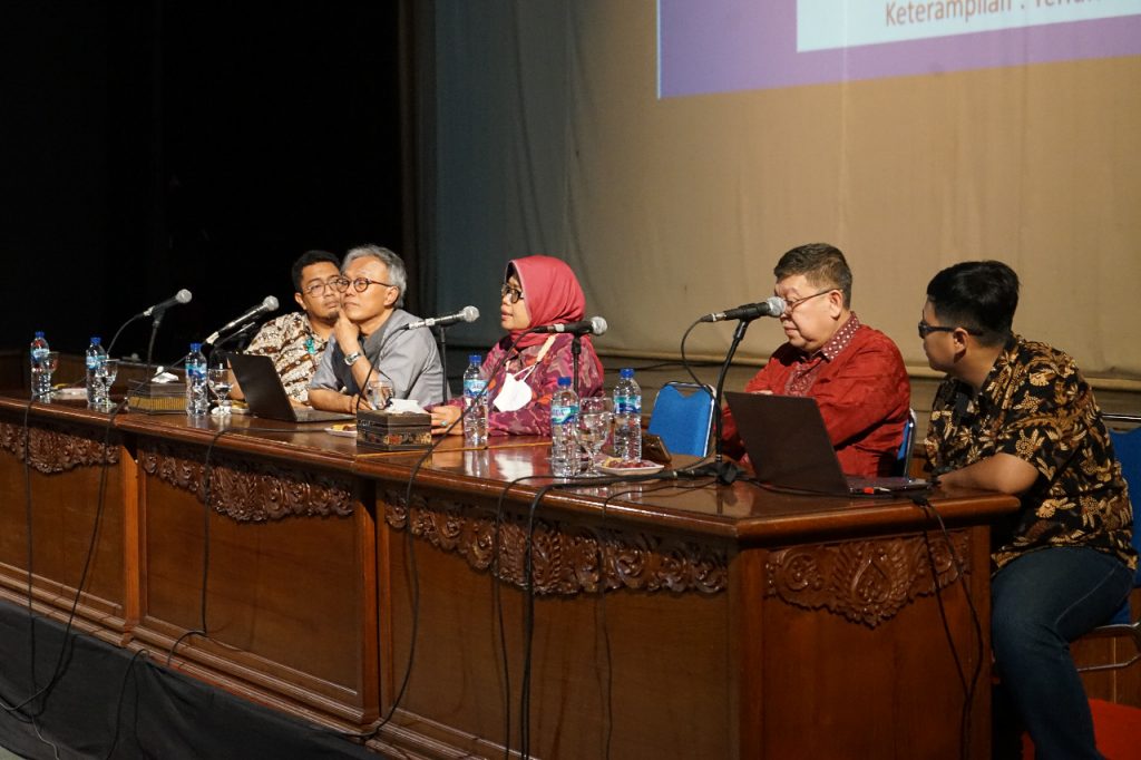 Seminar menghadirkan tiga narasumber utama, yaitu: Dra. Sri Lastami, S.T., M.IPL. (Direktur Kerjasama dan Pemberdayaan Kekayaan Intelektual DJKI Kemenkunham), Dr. Ir. Agus Windharto, DEA (ITS Design Centre Institut Teknologi Sepuluh November Surabaya) dan Prof. Dr. Bambang Sunarto, S.Sen., M.Sn. (Institut Seni Inonesia Surakarta).