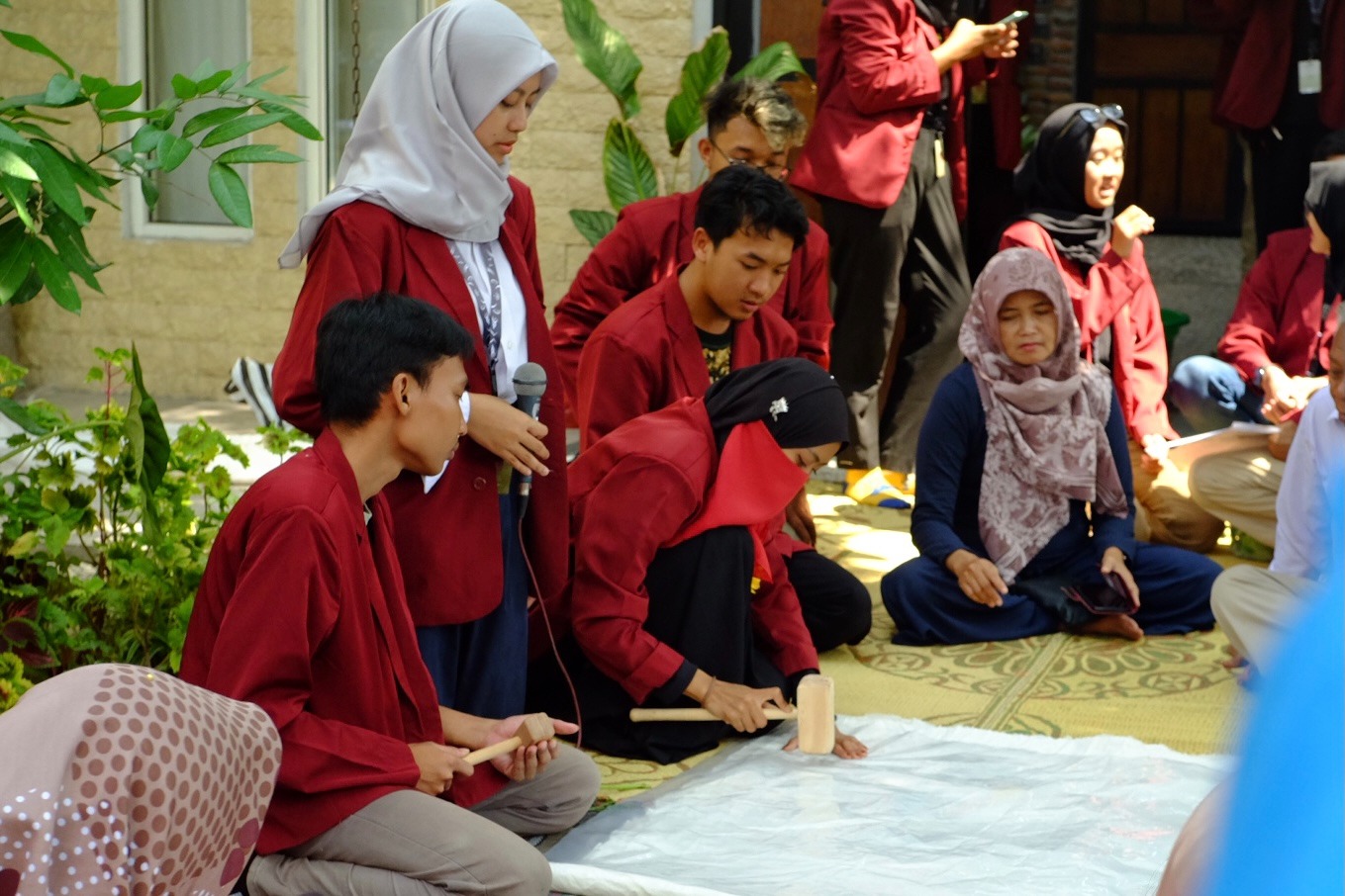 HUMASISISKA-12 mahasiswa dari Himpunan Mahasiswa (HIMA) Program Studi Desain Komunikasi Visual (DKV) Institut Seni Indonesia (ISI) Surakarta yang tergabung dalam kelompok PPKORMAWA menyelenggarakan kegiatan Pelatihan ecoprint, kegiatan tersebut dilaksanakan pada Minggu, 6 Agustus 2023 pukul 10.00 s/d 16:00 di serambi Rumah Seni Budaya Sarudjuk, Serengan, Surakarta dan diikuti oleh anggota PKK se-RW 09 Serengan, Surakarta.