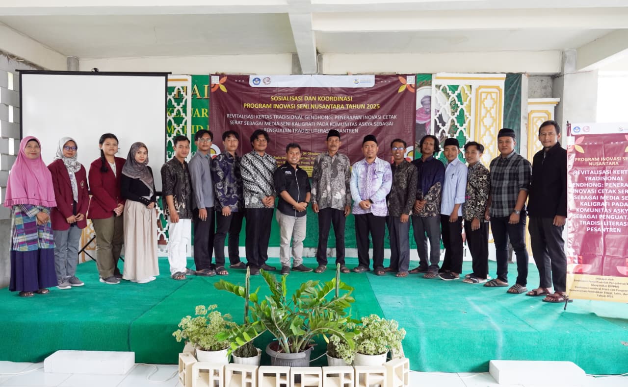 HUMASISISOLO, Ngawi — Tim pengabdian dari Institut Seni Indonesia Surakarta (ISI Solo) melaksanakan kegiatan bertajuk “Revitalisasi Kertas Tradisional Gendhong: Penerapan Inovasi Cetak Serat sebagai Media Seni Kaligrafi pada Komunitas Askya sebagai Penguatan Tradisi Literasi Pesantren”.