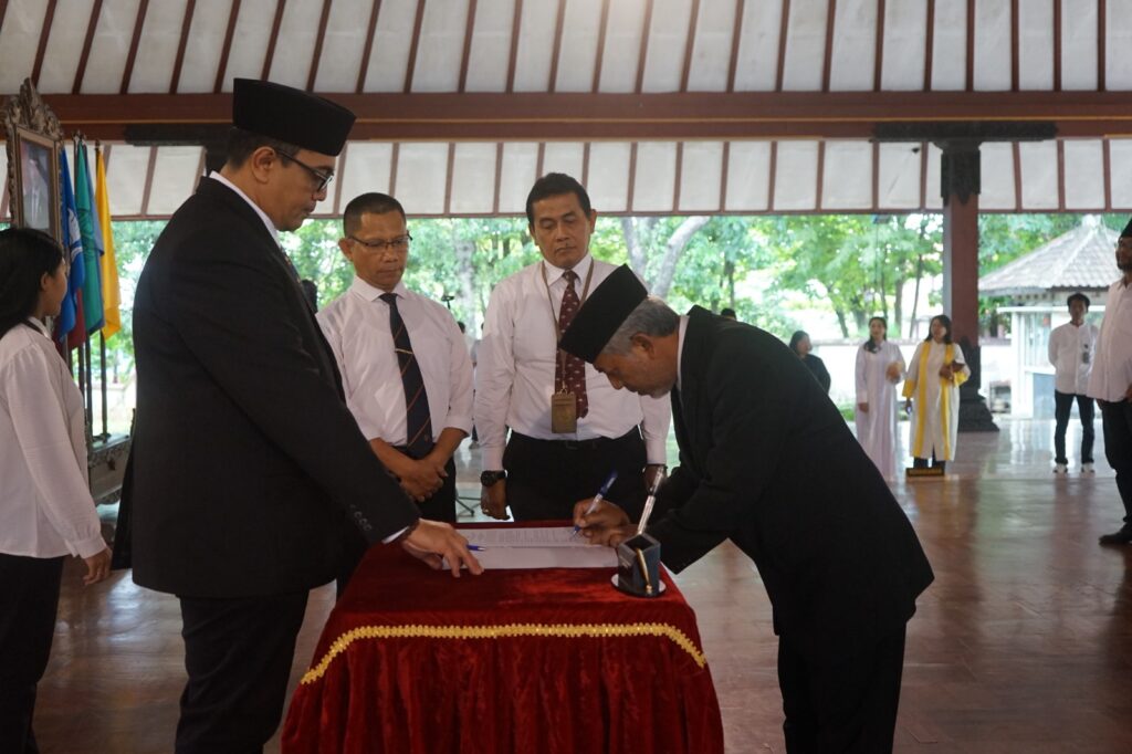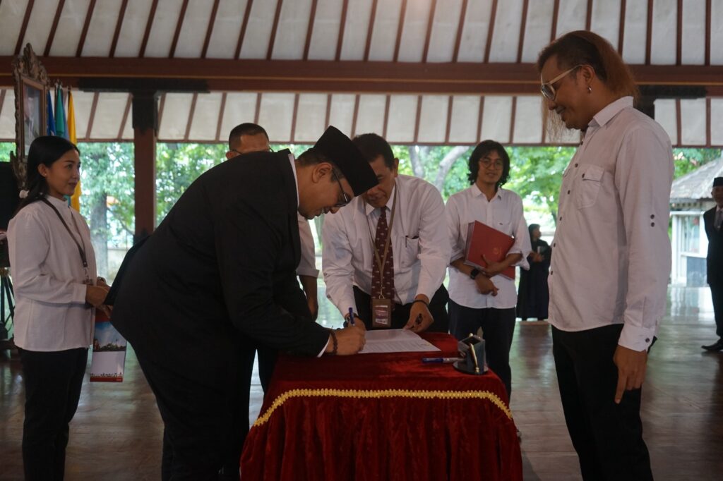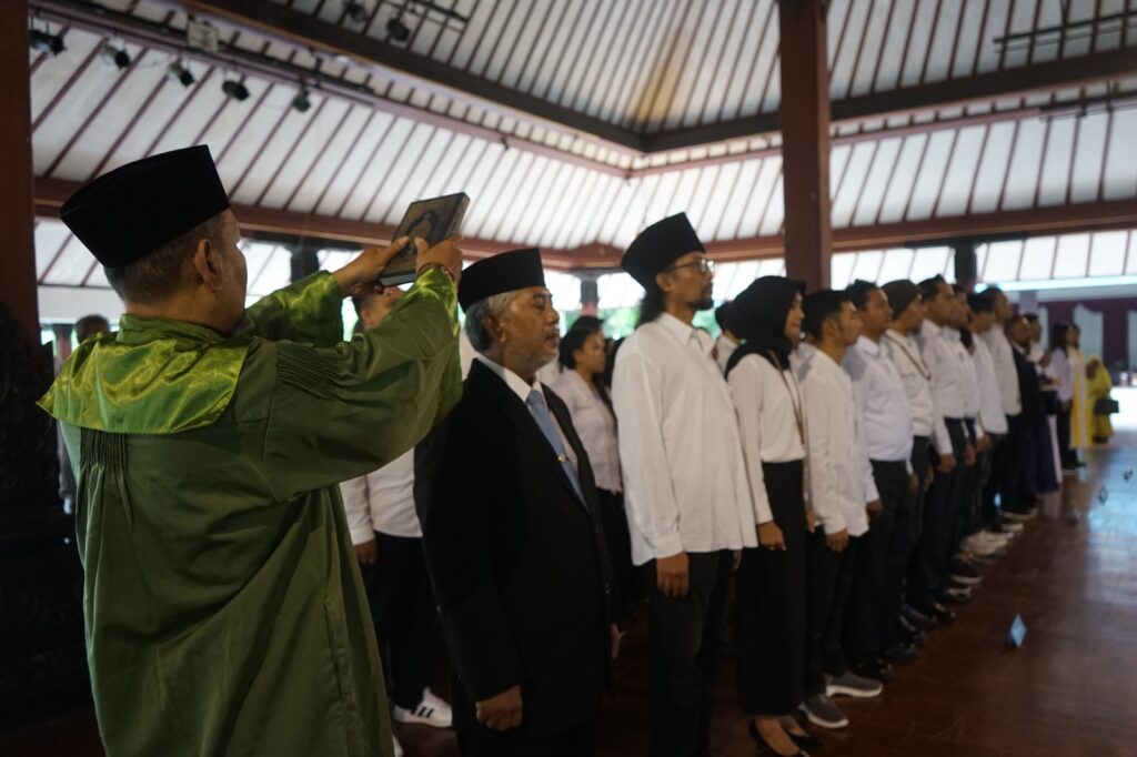 Dalam Sambutanya Rektor menyampaikan Puji syukur kita panjatkan ke hadirat Tuhan Yang Maha Esa, karena atas rahmat dan karunia-Nya, pada hari ini Jumat, 30/1/2026 kita dapat melaksanakan pelantikan pejabat struktural di lingkungan ISI Surakarta dalam keadaan sehat dan penuh harapan, di Pendapa GPH Joyokusumo ISI Surakarta. Pelantikan ini bukan sekadar sebuah agenda organisasi, bukan pula hanya pergantian jabatan atau penyesuaian struktur. Lebih dari itu, momen ini adalah peneguhan kepercayaan, sekaligus penegasan tanggung jawab bahwa amanah kepemimpinan di perguruan tinggi seni adalah amanah intelektual, kultural, dan moral. Bapak dan Ibu yang saya lantik hari ini adalah insan-insan terpilih, bukan hanya karena kompetensi akademik dan rekam jejak profesional, tetapi juga karena integritas, kepekaan, serta komitmen untuk melayani institusi ini dengan sepenuh hati. Jabatan yang Bapak dan Ibu emban bukanlah sekadar posisi administratif, melainkan ruang pengabdian untuk menjaga marwah keilmuan seni, kebudayaan, dan kemanusiaan.