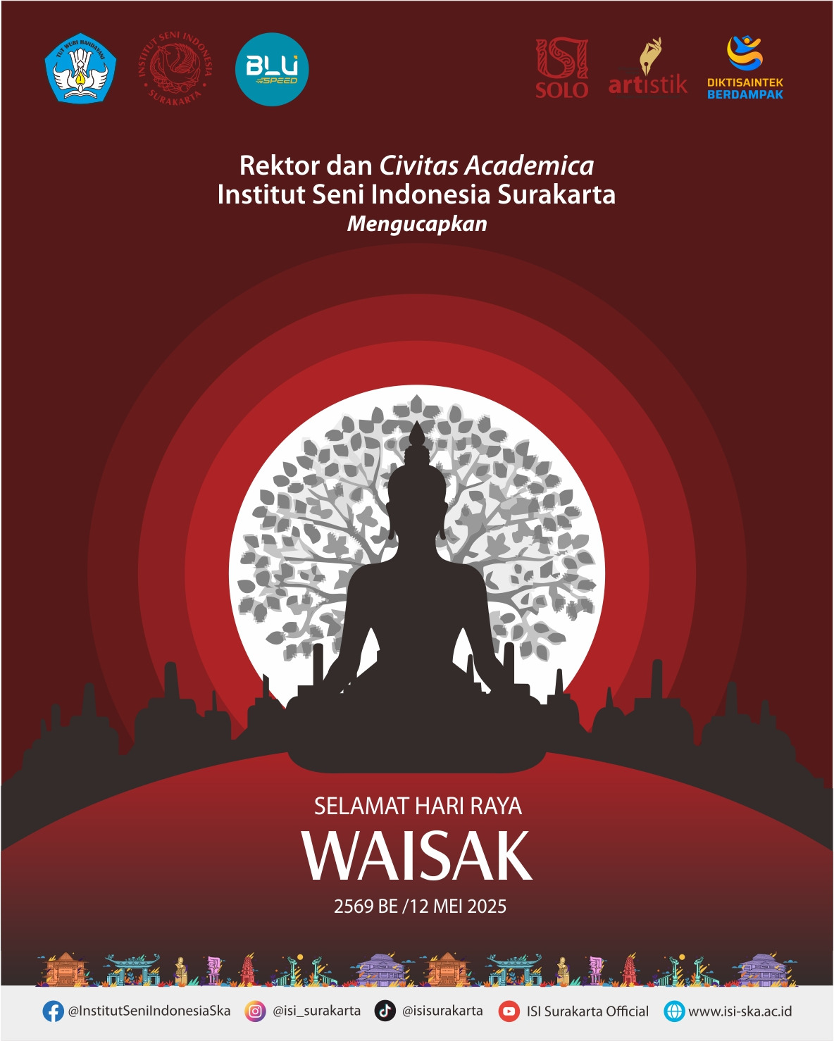 Keluarga Besar ISI Solo mengucapkan Selamat Merayakan Hari Raya Tri Suci Waisak 2569 BE/2025.