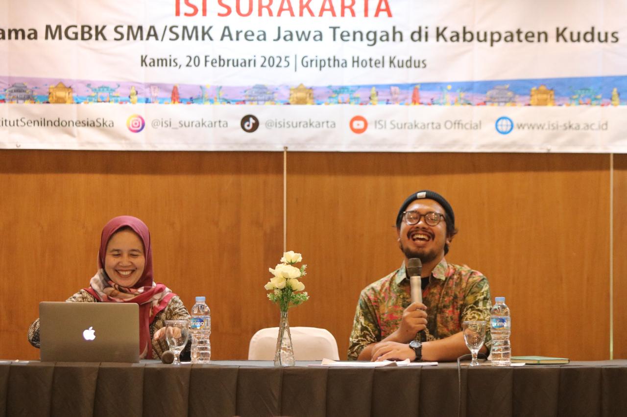HUMASISISOLO, — Kegiatan Sosialisasi Penerimaan Mahasiswa Baru Tahun Akademik 2025/2026 Institut Seni Indonesia Surakarta kepada Kepala Sekolah dan Guru Bimbingan Konseling (BK) SMA/MA/SMK wilayah Kabupaten Kudus dilaksanakan di Ruang Jade, Griptha Hotel Kudus, Kamis (20/2/2025).Kepala Sekolah dan Guru BK dapat proaktif membantu siswa dalam memahami sistem Seleksi Penerimaan Mahasiswa Baru yang diselenggarakan secara nasional maupun nantinya yang diselengarakan secara mandiri di ISI Solo.